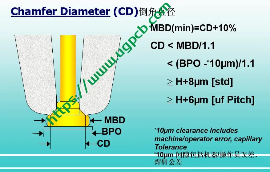 CD: En procesos de WB, Fab Equals CD. Esta coincidencia de tamaño permite que el bisel de CD agarre el FAB de manera más segura durante la vinculación, prevenir el deslizamiento de la pelota y las anomalías resultantes.