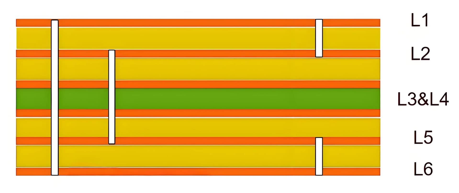 The unique structure of a 6L 1+N+1 HDI PCB includes: