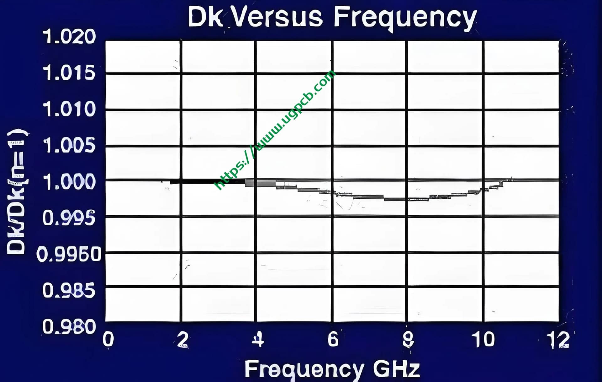 - The stability of Dk is excellent, with minimal changes with frequency and temperature.