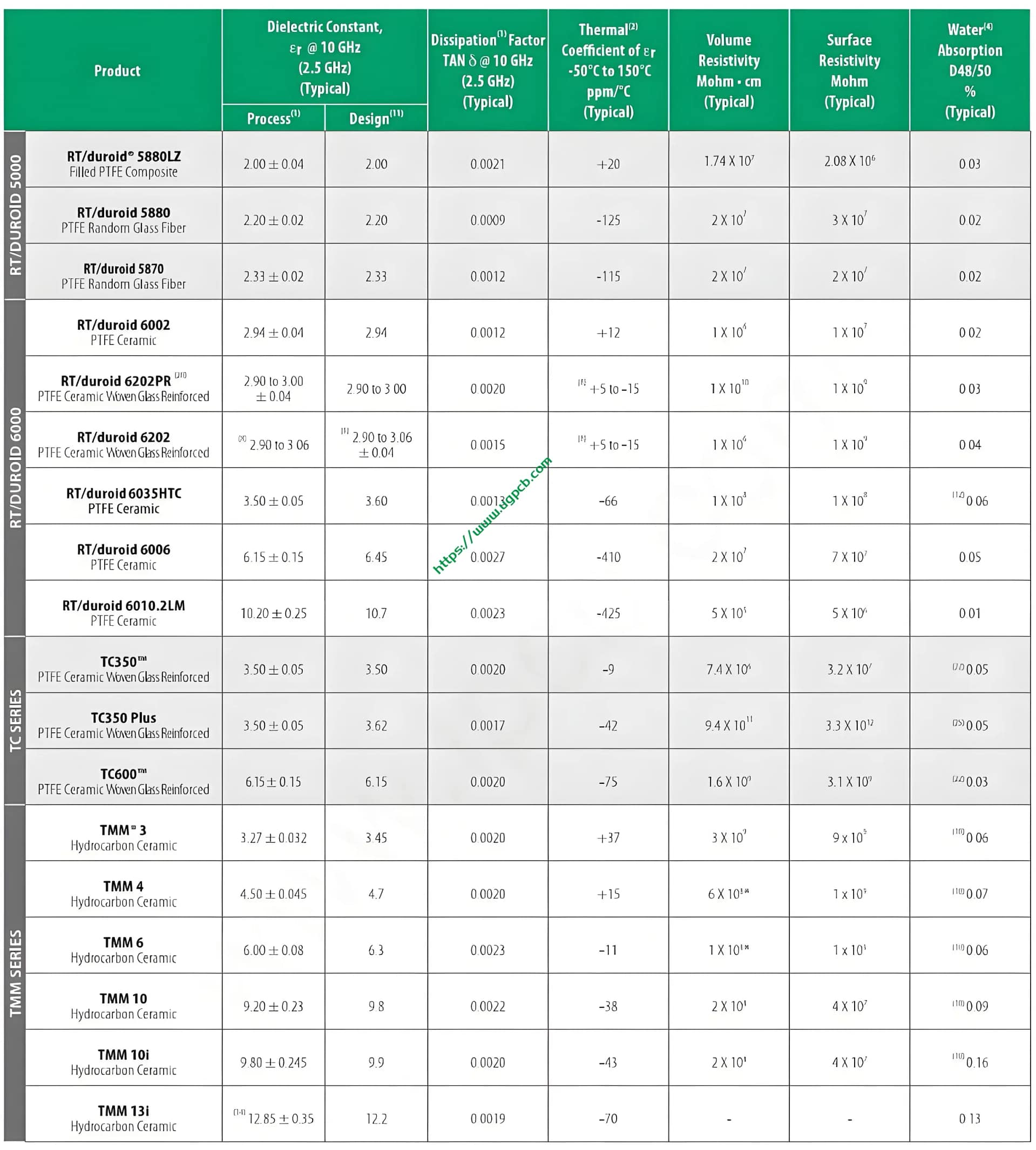 Características clave de los materiales PCB de alta frecuencia de Rogers