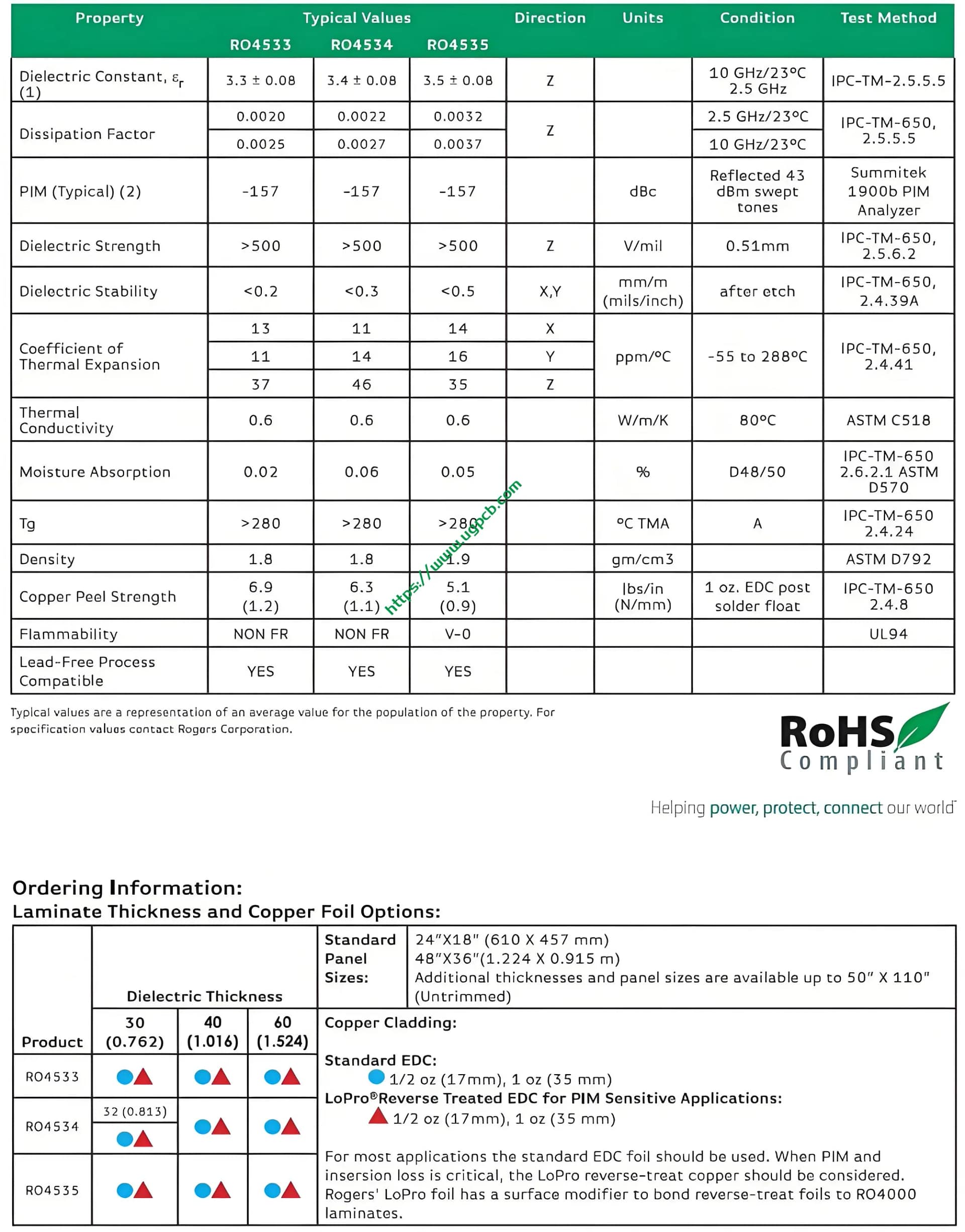 RO4533 Hydrocarbon Ceramics/RO4535 Series Compatibility