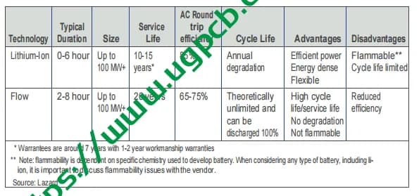 Tavolo 2.1: Summary of Lithium-ion and Flow Battery Characteristics