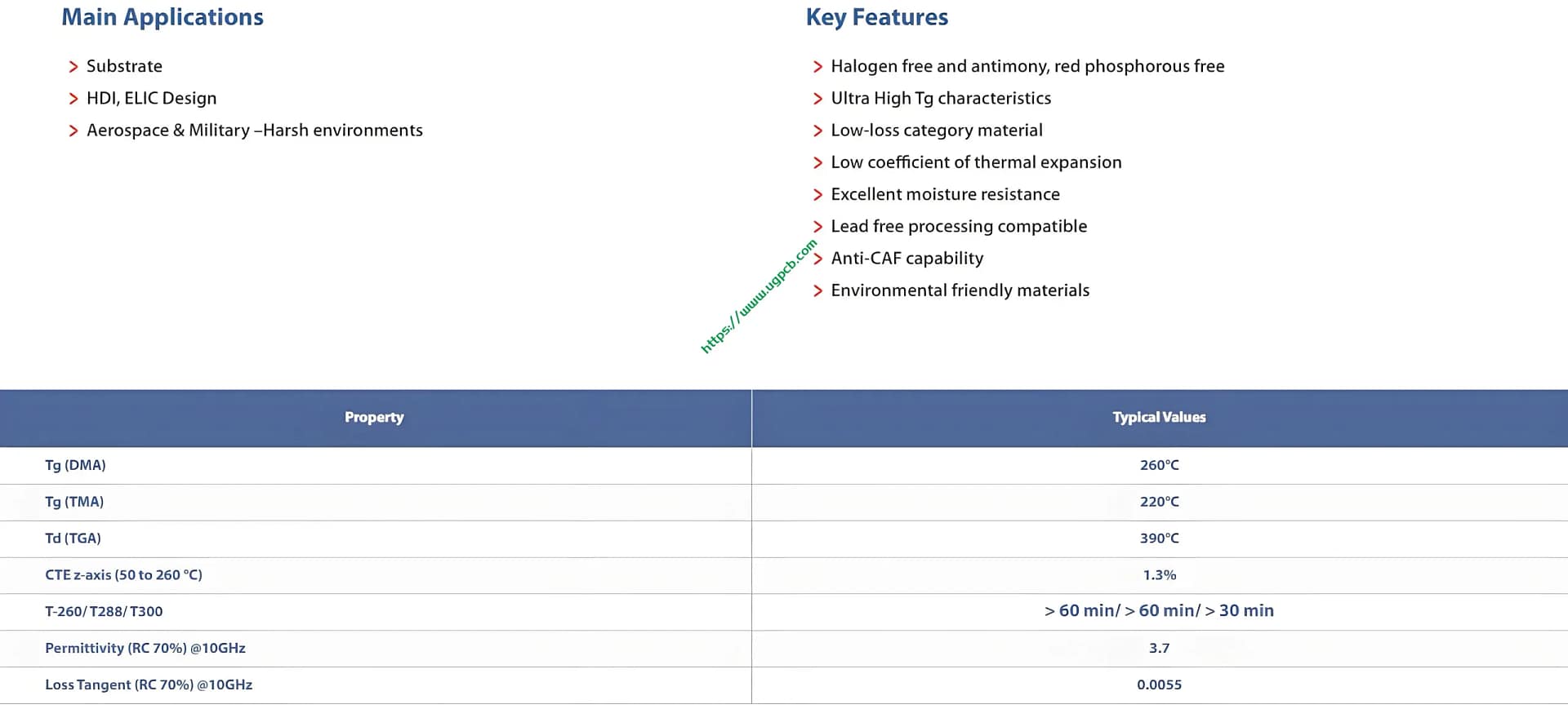 TU-900 high Tg260°C PCB material is crafted from a BT-like high-performance resin system and alkali-free glass fabric. It boasts halogen-free multilayer PCB design, high elastic modulus, alta affidabilità, basso dk/df, and low loss electrical properties.