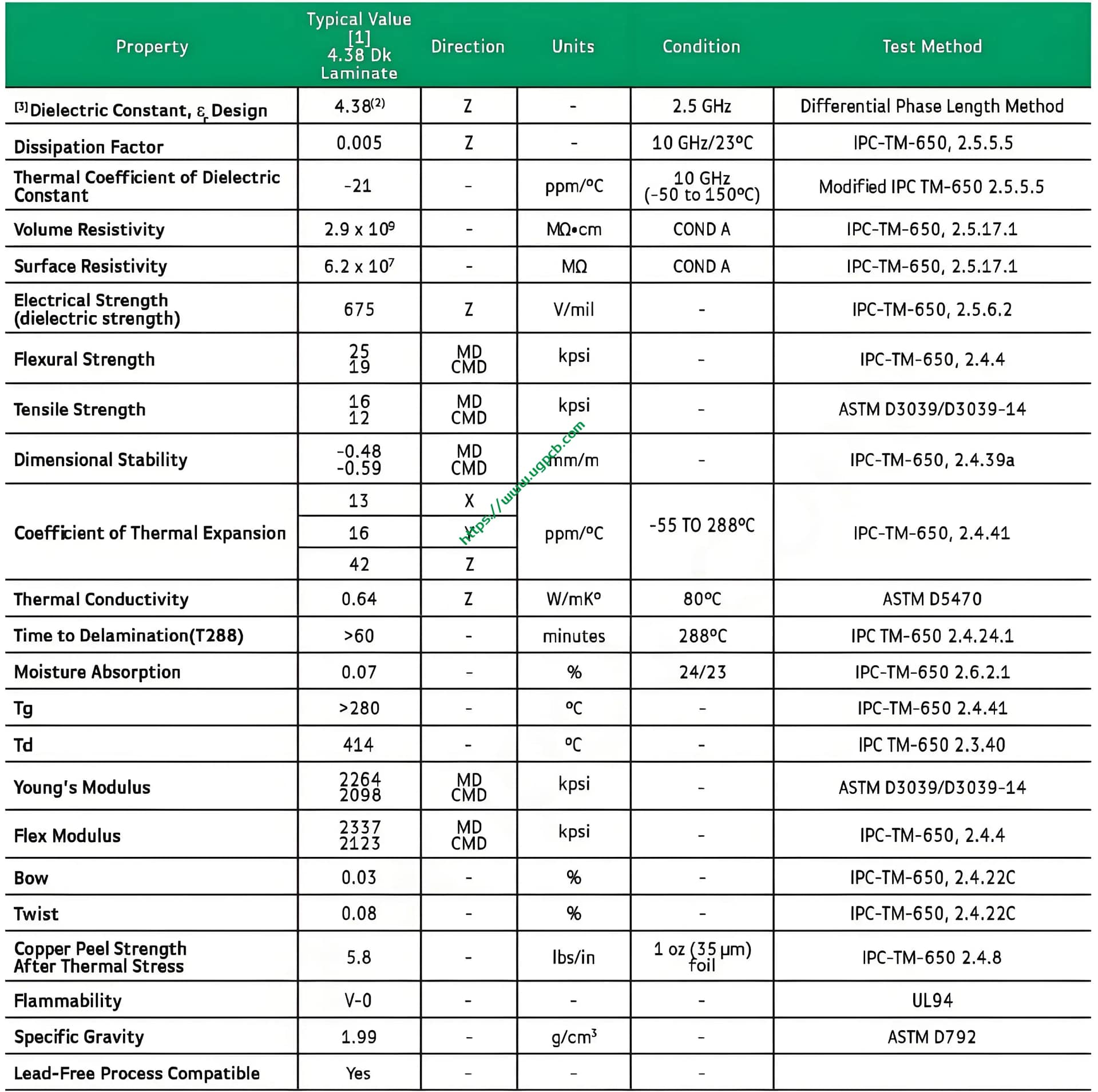 - Elevated Dielectric Constant: DK 4.38 ~에 2.5 GHz contributes to miniaturized circuit designs.
