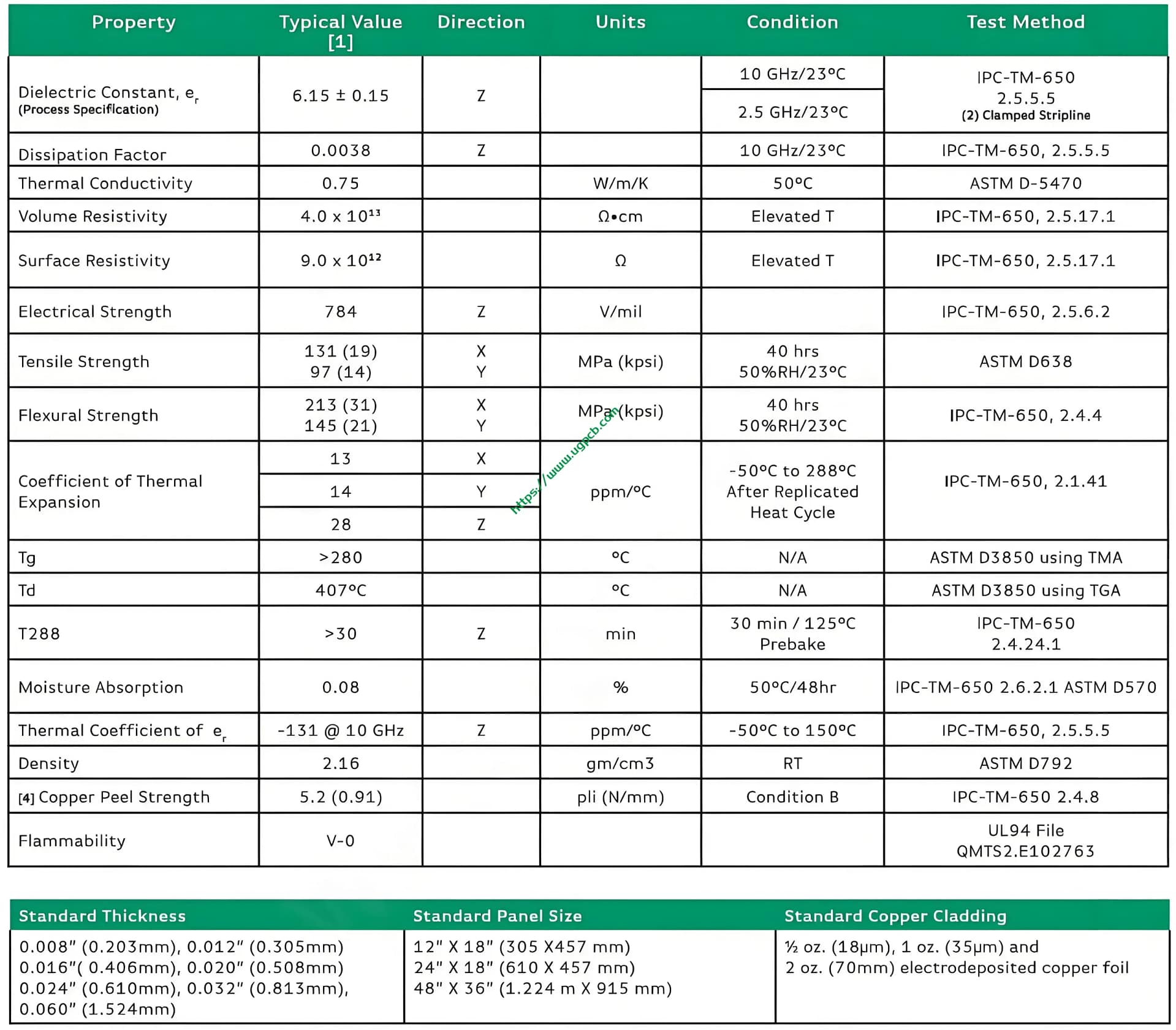 - A DK of 6.15 (Design DK 6.4), which allows designers to reduce circuit dimensions in applications where size and cost are critical.