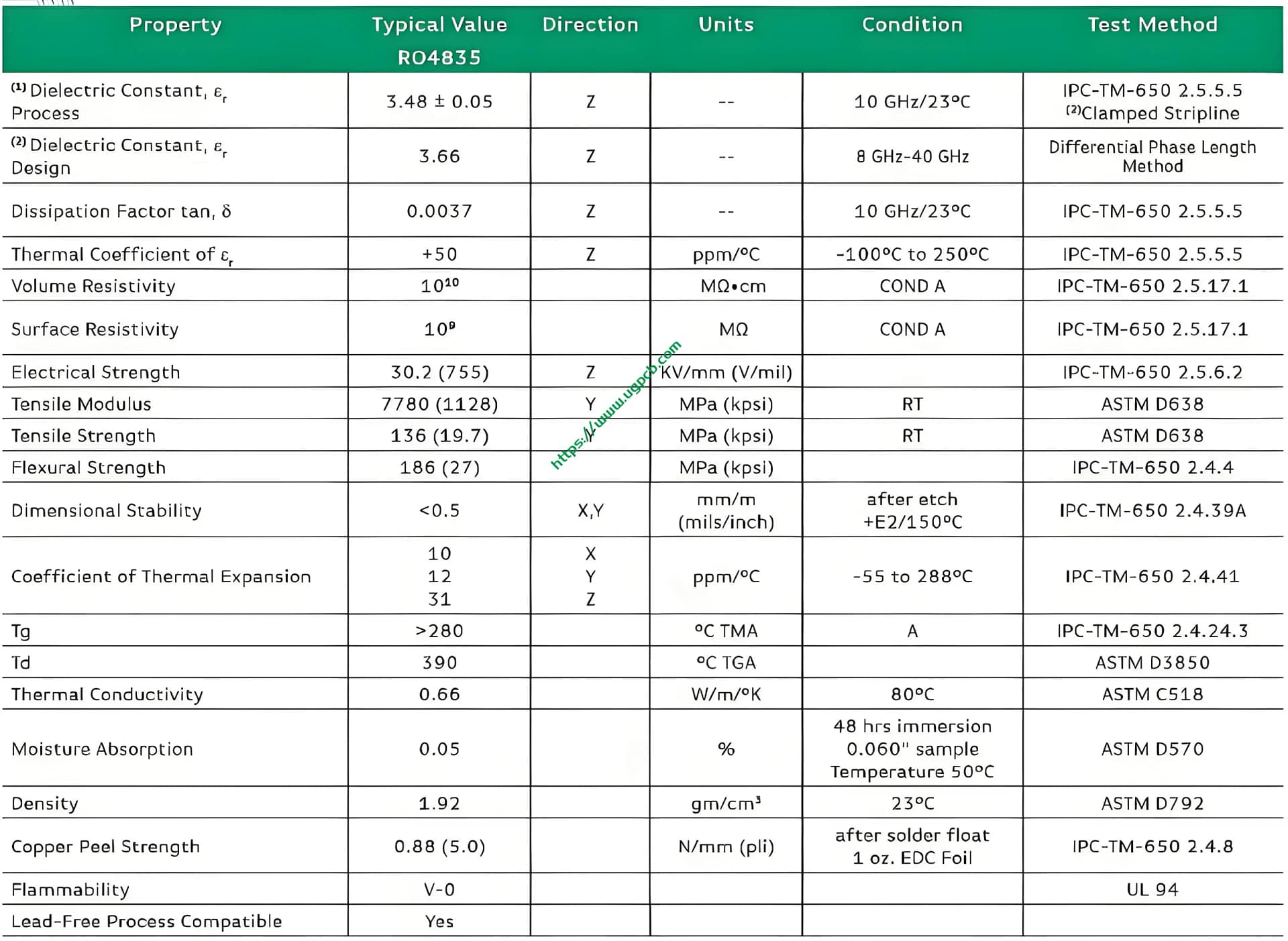 Подробные спецификации Rogers RO4835